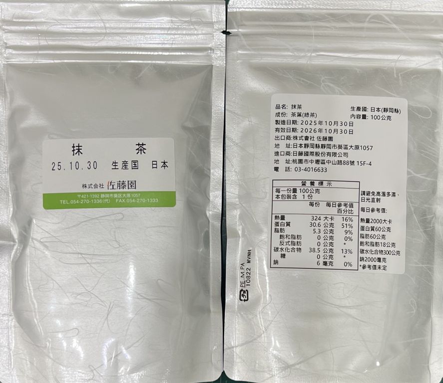 日本佐藤園抹茶粉亦皆從未再經任何分裝或加工銷售。